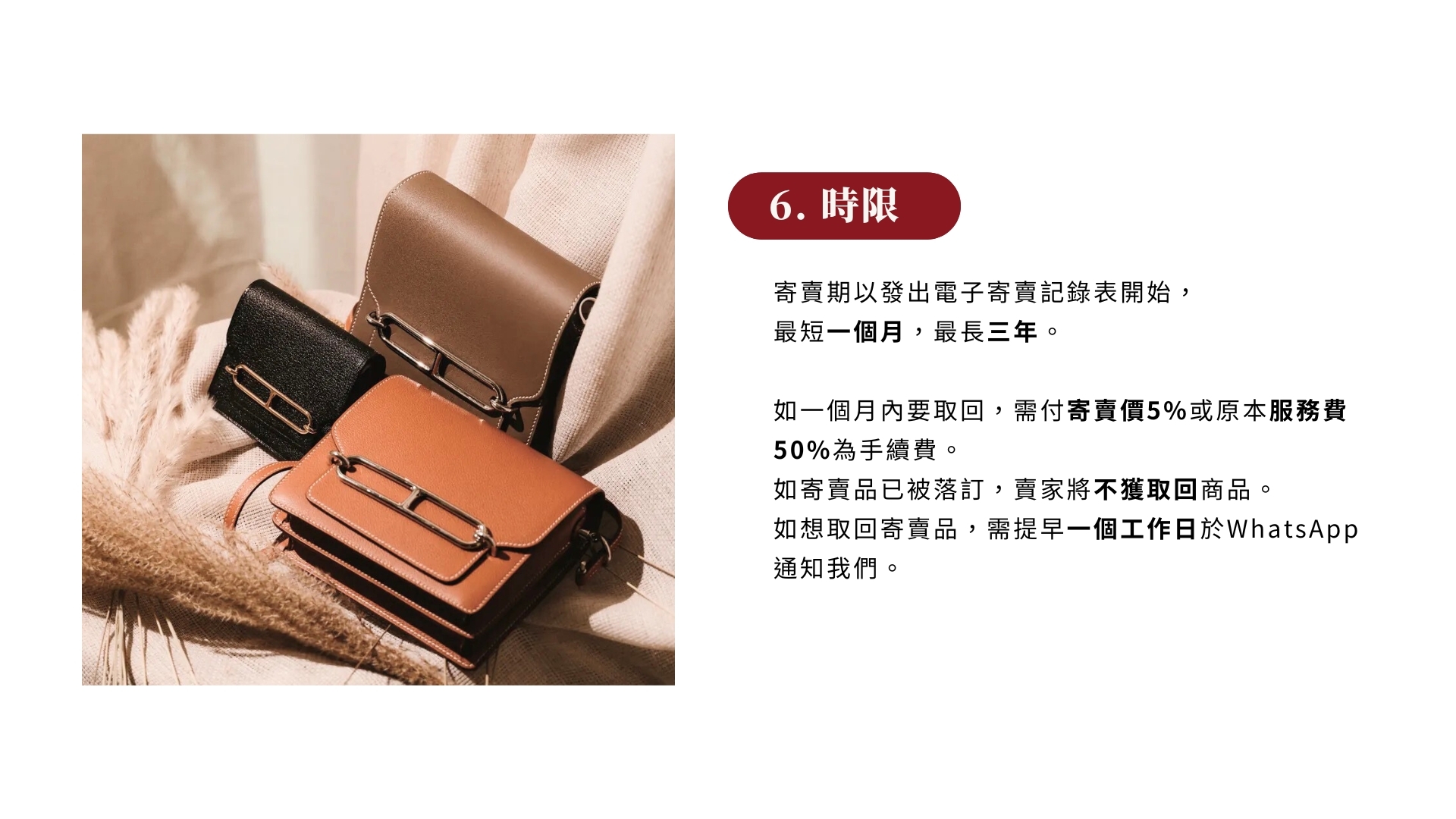 3. 如寄賣人於寄賣一個月內要取回商品,需付寄賣價5%手續費。如寄賣品已被落訂,寄賣人不獲取回商品。